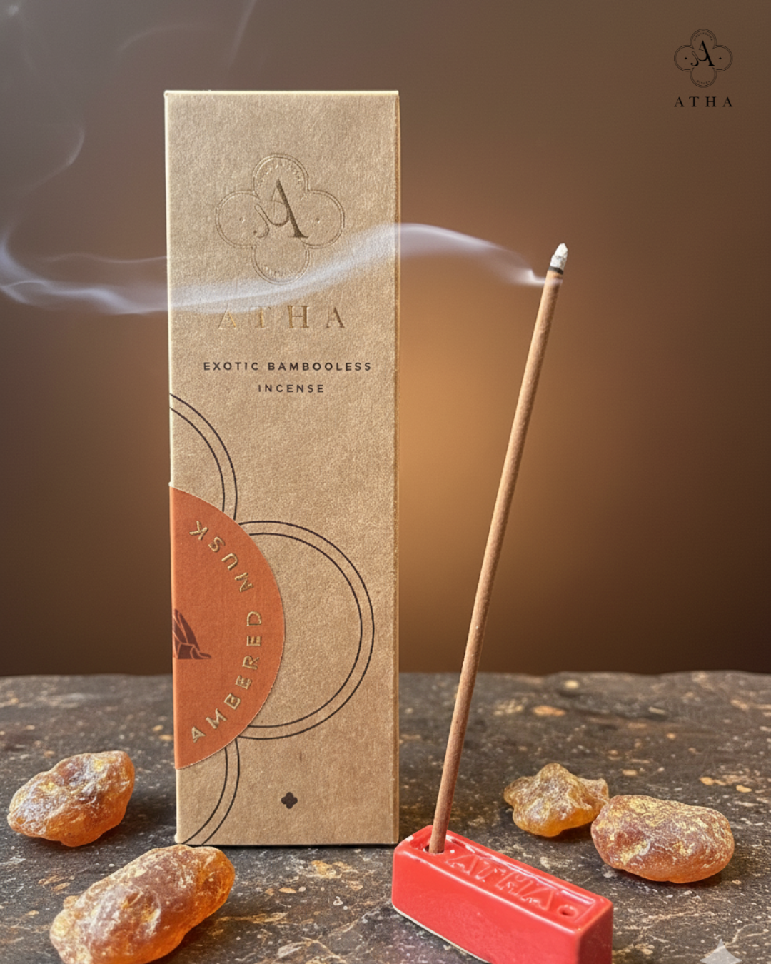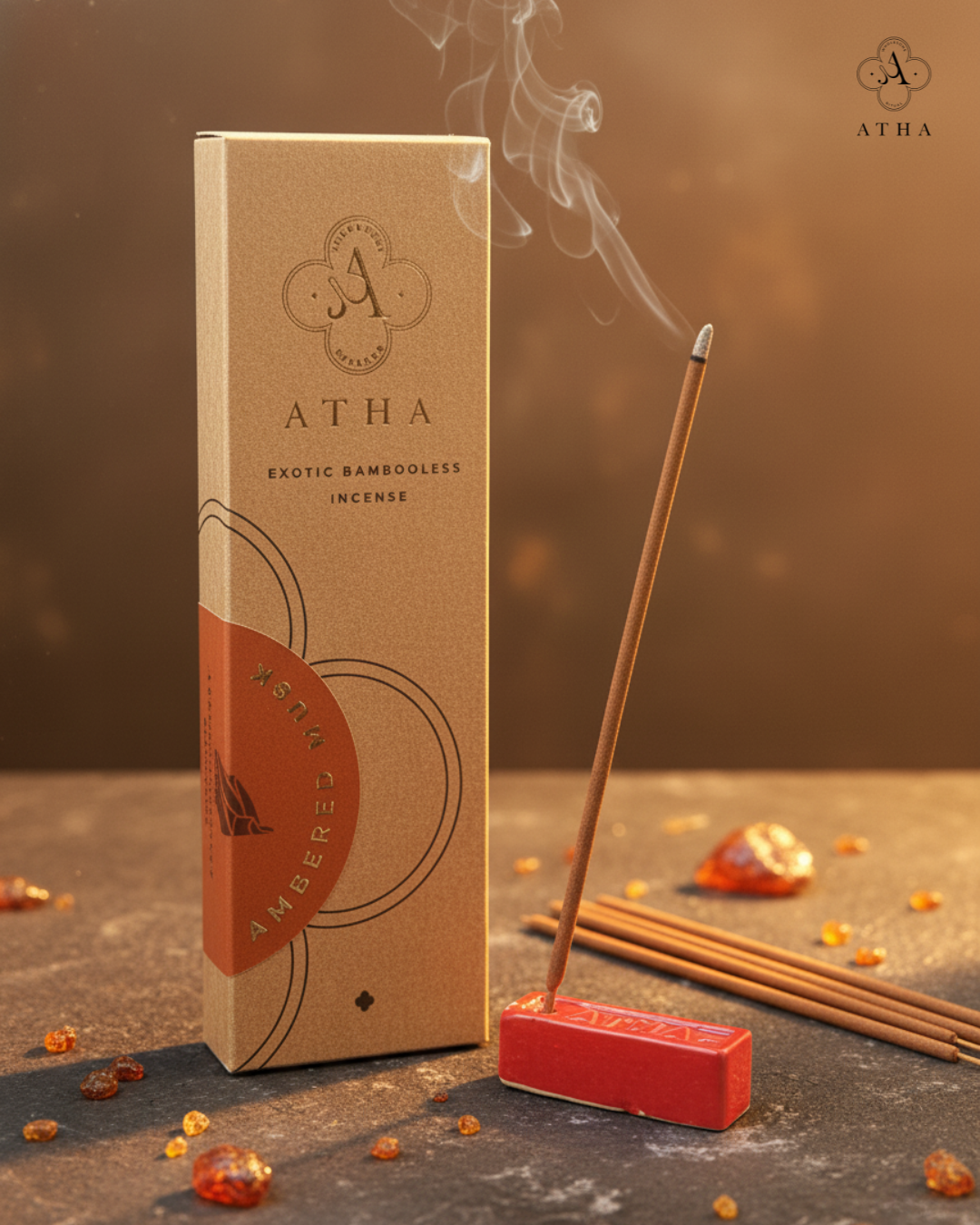 Atha’s Musked Amber Bambooless Incense delivers a warm, exotic aroma with eco-friendly design—crafted for serenity, balance, and mindful living.
