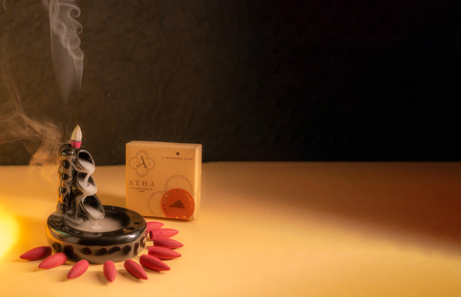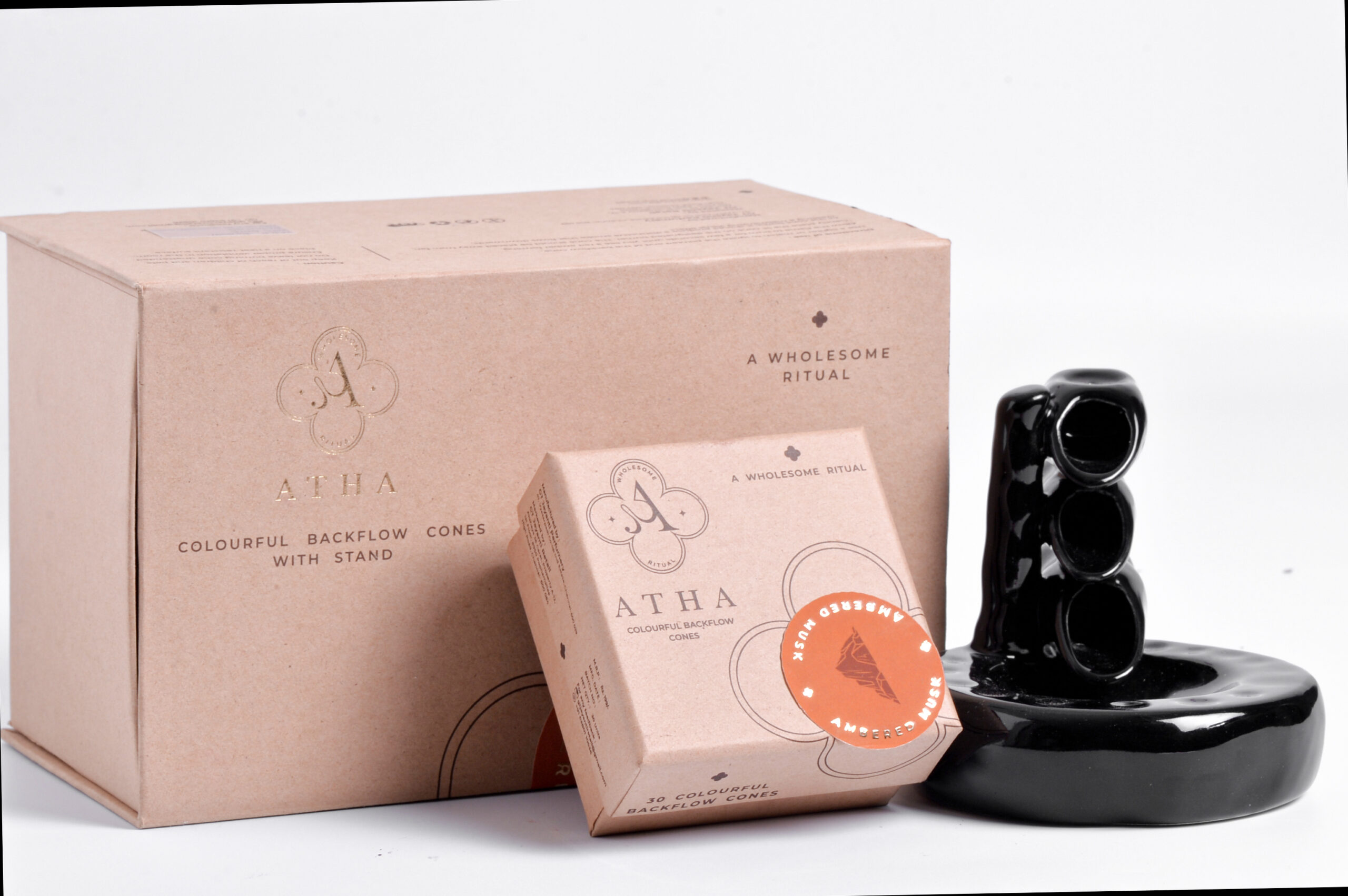 Atha’s Ambered Musk Mystical Backflow Incense Kit combines eco-friendly incense with a stunning smoke waterfall effect—perfect for peace, rituals, and gifting.