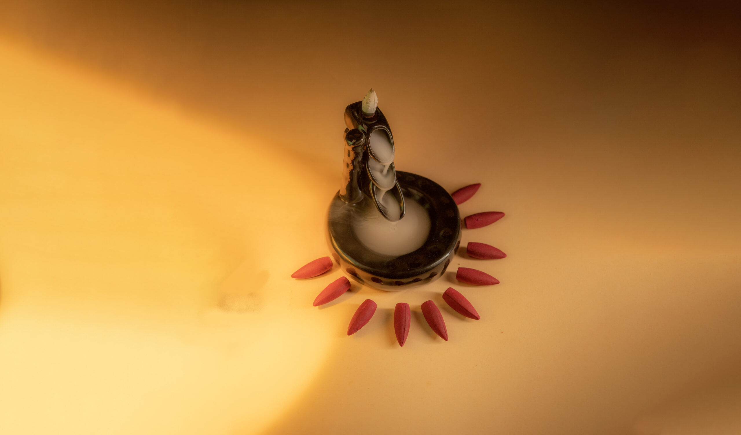 ✅ Step 4: As the cone burns, watch as the smoke flows downward like a waterfall, creating a calming and meditative atmosphere.